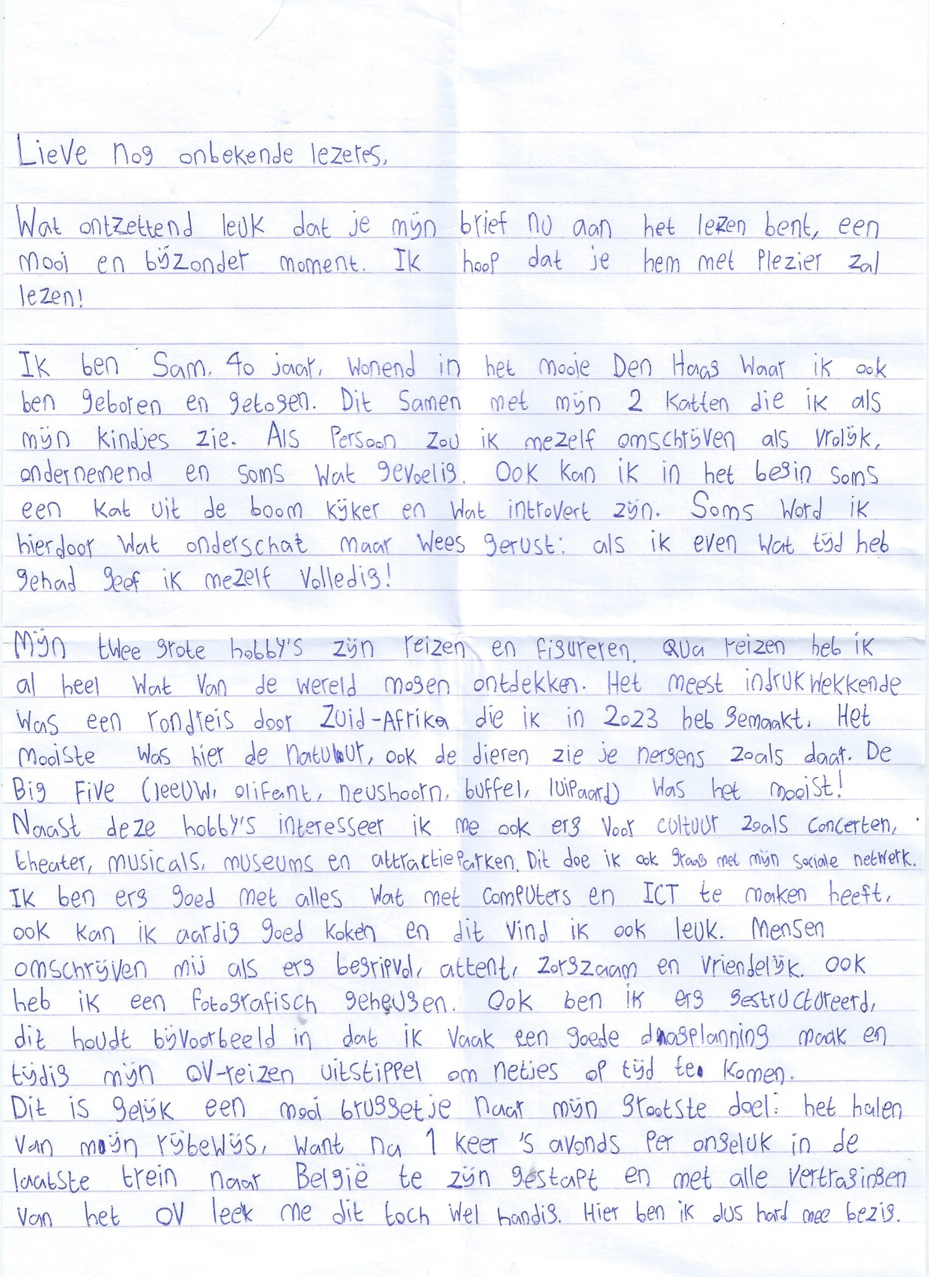 Meld je dan aan als brievenschrijver en begin met schrijven. Laat ons dan gelijk via WhatsApp weten dat jij Sam een brief wilt schrijven, dan brengen we hem alvast op de hoogte.